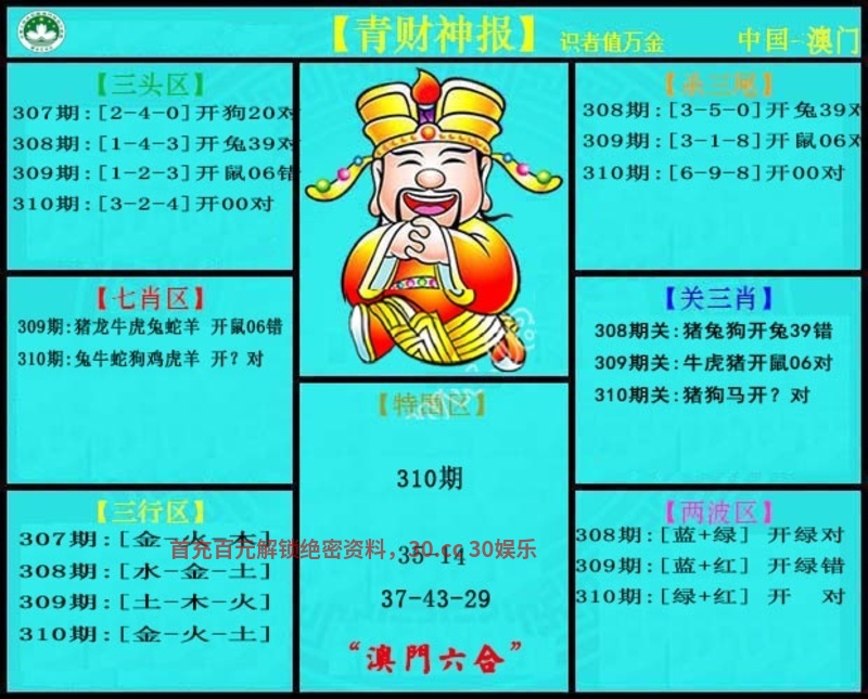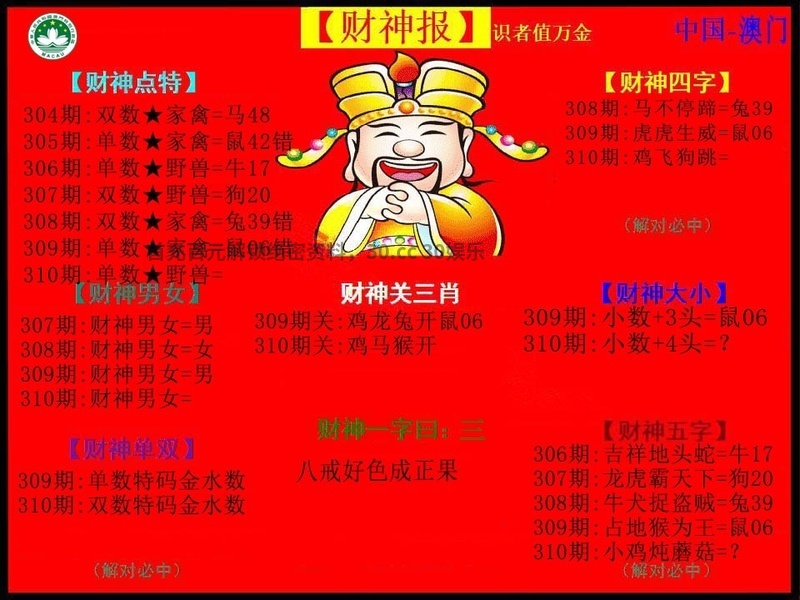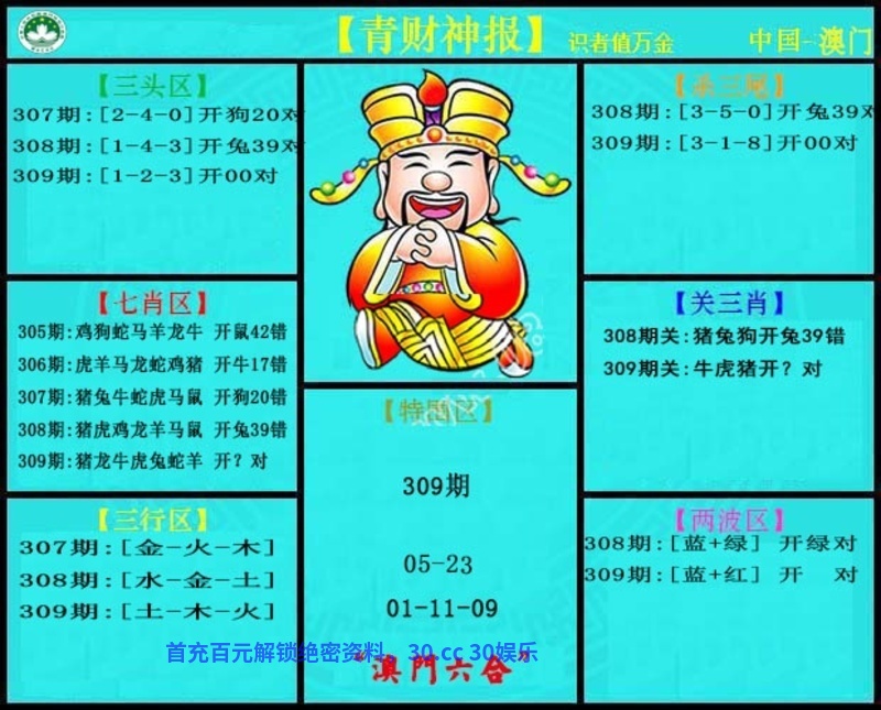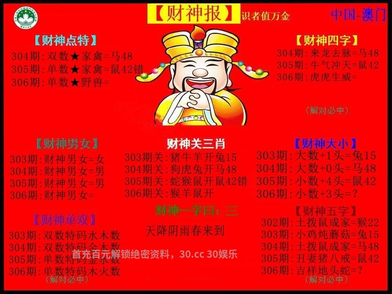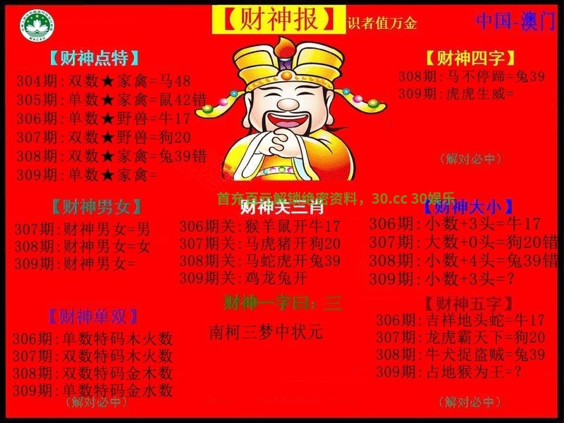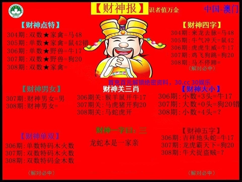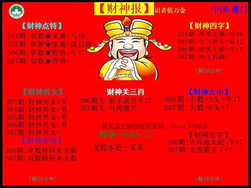 | 306期 | 0尾-3尾-7尾 | 1尾-4尾-5尾 | 0尾-1尾-4尾 |
